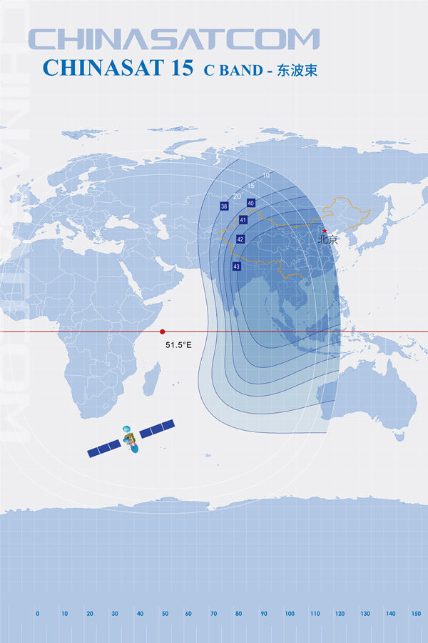 中星15號(hào)/白俄羅斯1號(hào)衛(wèi)星是一顆中國和白俄羅斯的合作衛(wèi)星,采用東方紅4號(hào)平臺(tái),設(shè)計(jì)壽命15年,衛(wèi)星將定點(diǎn)于東經(jīng)51.5度,提供20個(gè)C頻段和18個(gè)Ku頻段轉(zhuǎn)發(fā)器。C頻段波束可以覆蓋非洲、歐洲、中東和亞洲,Ku頻段非洲波束覆蓋西非、中非和東非地區(qū)。中星15號(hào)衛(wèi)星將通過高質(zhì)量的衛(wèi)星轉(zhuǎn)發(fā)器為上述地區(qū)提供廣播、通信、電信港和數(shù)據(jù)中心服務(wù)。