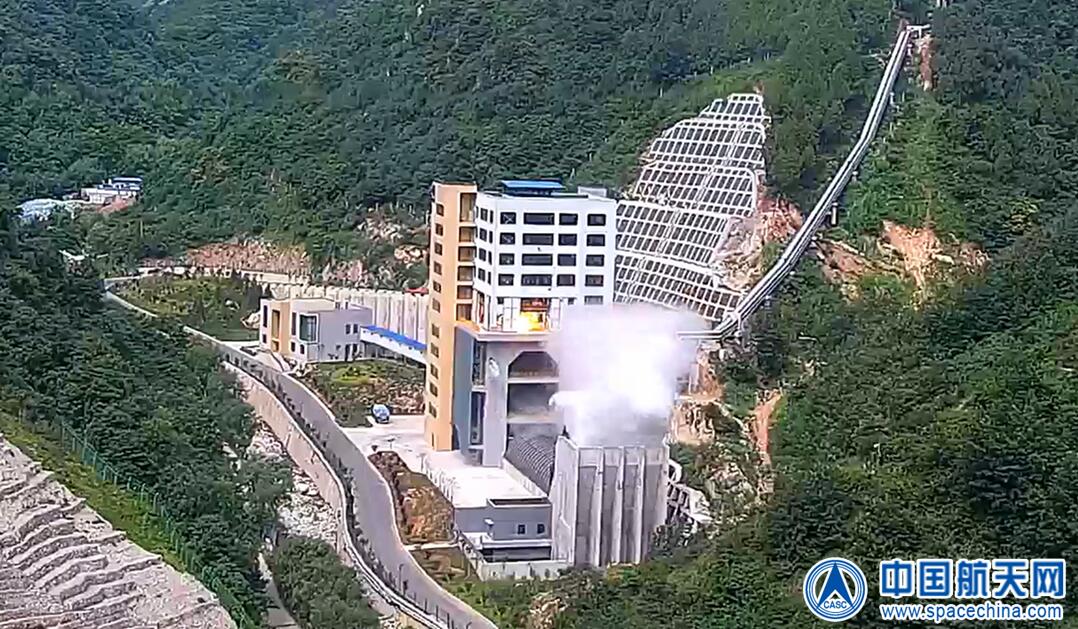 圖為120噸液氧煤油發(fā)動機工藝檢定試車現(xiàn)場。 李佳霖 攝