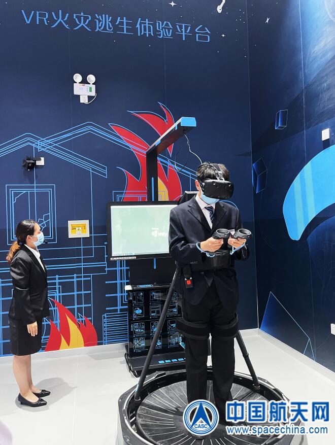 圖為工作人員正在進行VR火災逃生體驗平臺操作演示。 王公為 攝