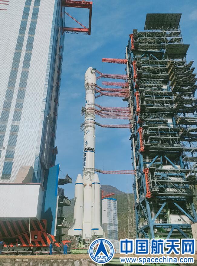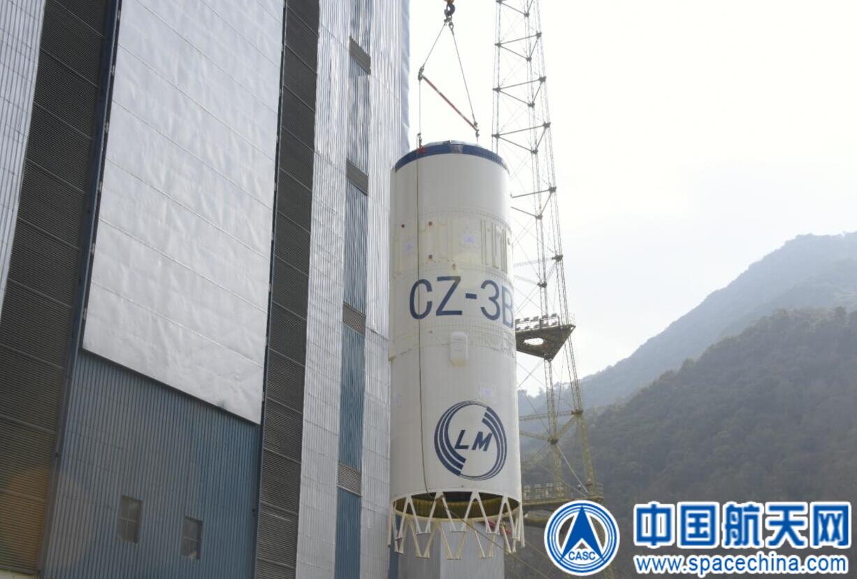 執(zhí)行本次任務(wù)的長(zhǎng)三乙火箭由航天科技集團(tuán)一院抓總研制,采用長(zhǎng)三甲系列火箭統(tǒng)一構(gòu)型設(shè)計(jì)思路,采用4000F整流罩。該狀態(tài)火箭全長(zhǎng)56.326米,全箭起飛質(zhì)量約456噸。