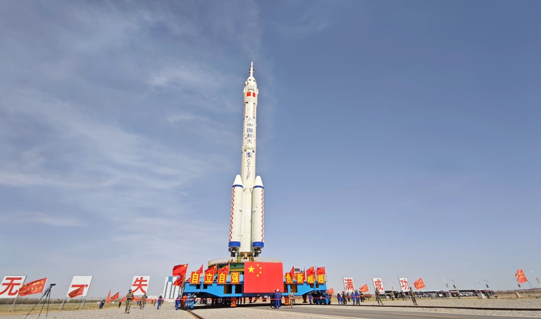 4月17日,由中國(guó)航天科技集團(tuán)有限公司研制的神舟十八號(hào)載人飛船與長(zhǎng)征二號(hào)F遙十八運(yùn)載火箭組合體已轉(zhuǎn)運(yùn)至發(fā)射區(qū)。