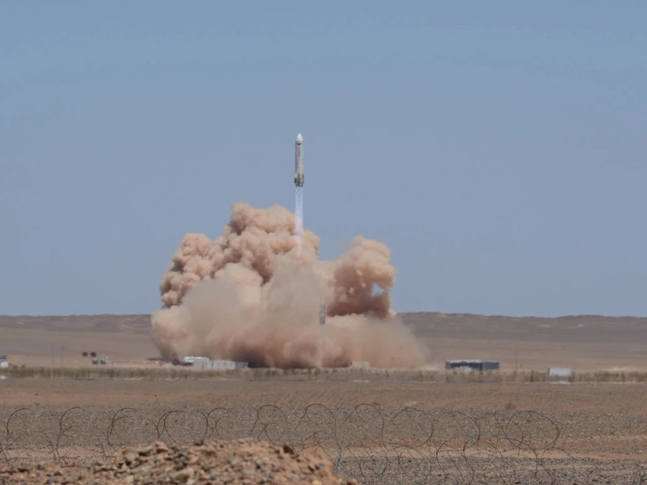 下午1時許,在酒泉衛(wèi)星發(fā)射中心,3.8米直徑的重復(fù)使用運載火箭新技術(shù)驗證箭豎立在場坪發(fā)射臺上,3臺變推液氧甲烷發(fā)動機點火,噴出藍色尾焰,箭體上升至約12公里高度,中心發(fā)動機調(diào)節(jié)推力,火箭受控下降,在距離地面50米處,四條著陸腿展開,隨后火箭緩速下降,高度趨近于零,穩(wěn)穩(wěn)落在回收場坪,實現(xiàn)定點垂直軟著陸。