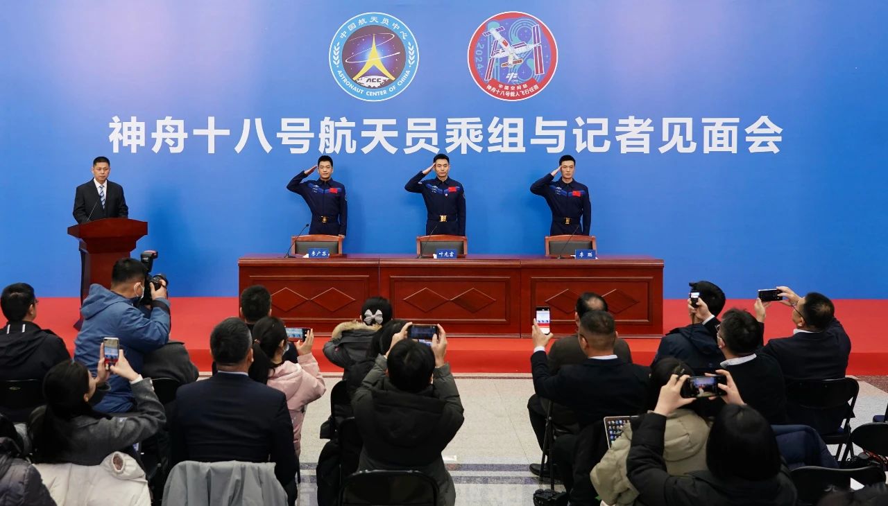 1月8日下午,中國航天員科研訓(xùn)練中心在北京航天城舉行神舟十八號乘組與記者見面會。這是神舟十八號乘組返回60余天后,首次與媒體和公眾正式見面。