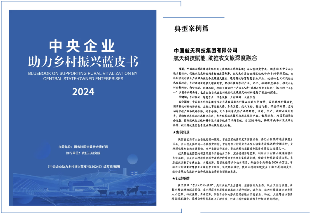 國務(wù)院國資委發(fā)布了《中央企業(yè)助力鄉(xiāng)村振興藍皮書(2024)》,集團公司《航天科技賦能,助推農(nóng)文旅深度融合》案例入選。