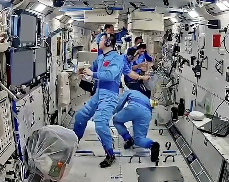 6名航天員在軌有序工作(來(lái)源:央視新聞)