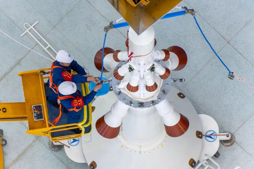船箭對(duì)接(王衡 攝,來(lái)源:酒泉衛(wèi)星發(fā)射中心)