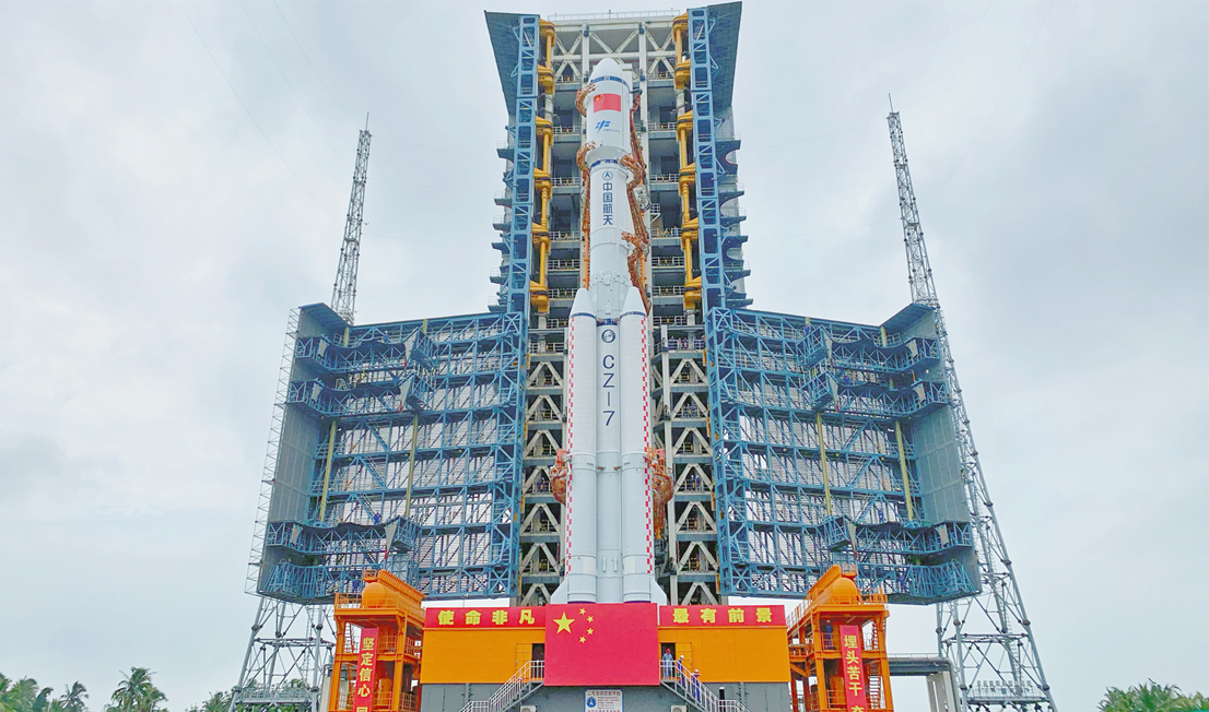 • 天舟五号飞船与长征七号遥六火箭组合体垂直转运至发射区