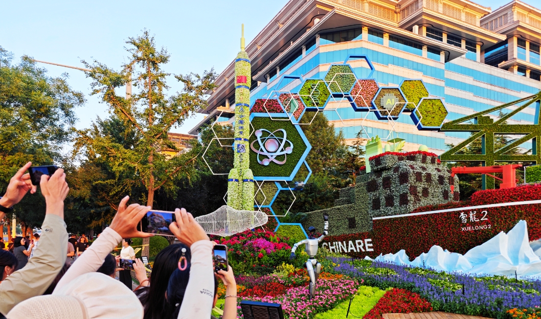 纪念抗战胜利80周年长安街沿线花坛全部亮相