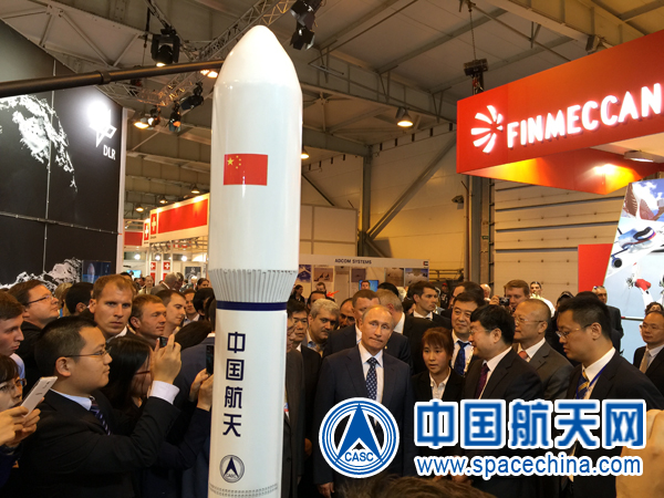 普京一行在中國航天科技集團(tuán)公司展臺(tái)參觀