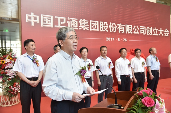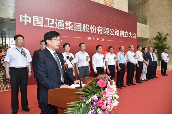 集團(tuán)公司雷凡培董事長宣布中國衛(wèi)通集團(tuán)股份有限公司成立,并做了重要講話,他指出,整體改制為股份公司是衛(wèi)通公司資產(chǎn)證券化進(jìn)程中的重要環(huán)節(jié),推進(jìn)資產(chǎn)證券化既是落實(shí)黨中央、國務(wù)院關(guān)于深化國有企業(yè)改革的重要舉措,也是集團(tuán)公司深化改革和衛(wèi)通公司自身發(fā)展的內(nèi)在需要,更是服務(wù)好國家創(chuàng)新驅(qū)動(dòng)發(fā)展戰(zhàn)略、軍民深度融合發(fā)展戰(zhàn)略和“一帶一路”倡議的有力保障。要求衛(wèi)通公司董事會(huì)及經(jīng)營管理層要認(rèn)真落實(shí)后續(xù)工作,明確任務(wù)、及早謀劃,扎實(shí)推進(jìn)整體上市,促進(jìn)衛(wèi)通公司又好又快發(fā)展。