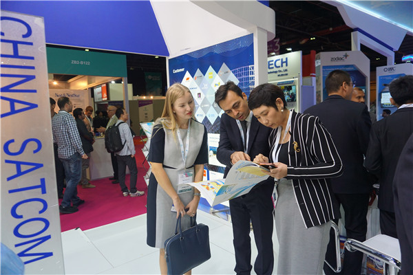 繼2016年首次參展后,中國衛(wèi)通以“連接你和世界”為主題第三次獨(dú)立設(shè)展,簡潔大氣的展臺、豐富的衛(wèi)星資源成為展會上一道靚麗的風(fēng)景。中國衛(wèi)通本次重點(diǎn)推介覆蓋中東、非洲的中星15號、中星12號、中星11號等優(yōu)質(zhì)衛(wèi)星資源和“海星通”船載業(yè)務(wù),同時介紹了在建的中星18號衛(wèi)星資源。來自阿聯(lián)酋、也門、沙特、阿曼、蘇丹、巴基斯坦、阿富汗、肯尼亞、印度、保加利亞、塞浦路斯、俄羅斯、荷蘭、比利時、英國、丹麥、德國、法國、意大利、香港等國家及地區(qū)的意向用戶、項(xiàng)目提供商及合作伙伴紛紛來到展臺,對中國衛(wèi)通豐富的衛(wèi)星資源、優(yōu)質(zhì)的服務(wù)給予充分肯定和高度贊賞,同時也表達(dá)了與公司合作的熱切期盼。