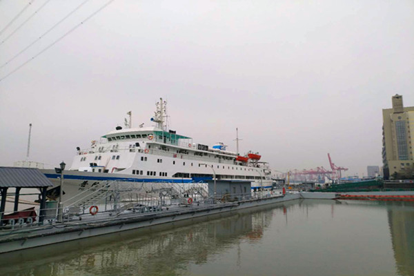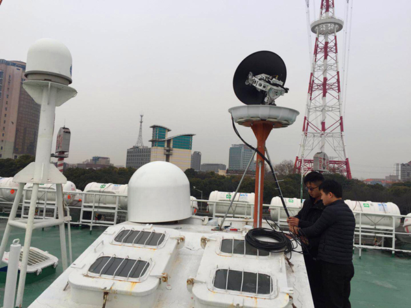 船載衛(wèi)星站“普陀山”輪的開通工作現(xiàn)場