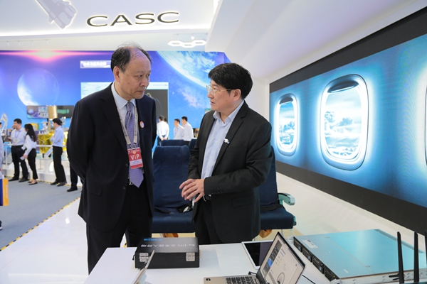 航天科技集團董事長吳燕生陪同中國氣象局局長劉雅鳴蒞臨展臺