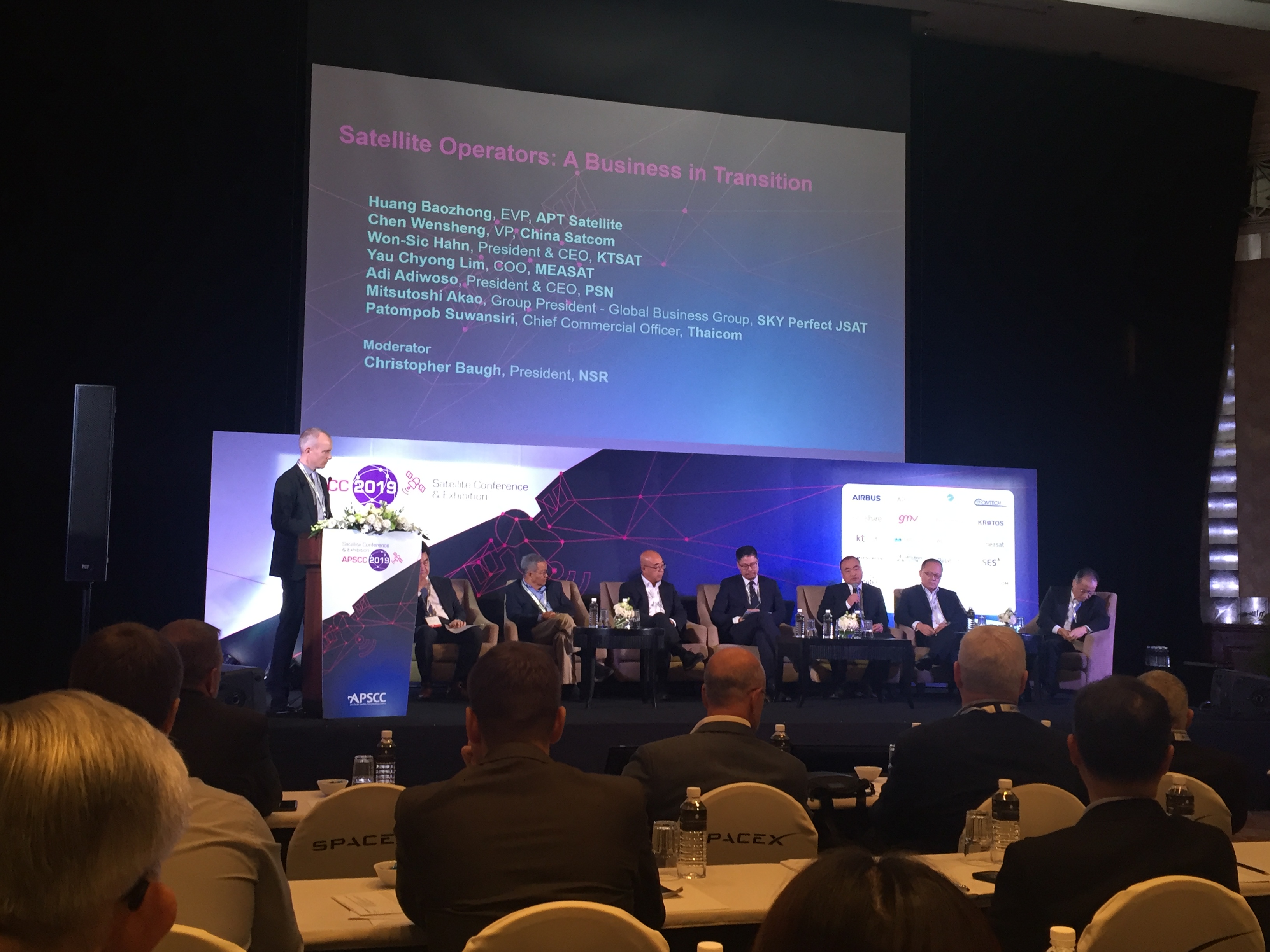 由亞太衛(wèi)星通信委員會(APSCC)舉辦的2019年APSCC衛(wèi)星產(chǎn)業(yè)大會于11月19-21日在泰國曼谷隆重召開。該衛(wèi)星產(chǎn)業(yè)大會是亞太地區(qū)影響力和規(guī)模最大的衛(wèi)星產(chǎn)業(yè)大會之一,已連續(xù)成功舉辦了二十二屆。全球衛(wèi)星運營商、衛(wèi)星制造商、火箭生產(chǎn)和服務(wù)商、保險和咨詢公司以及亞太地區(qū)衛(wèi)星運營商等來自20余個國家400余名代表參加了本次大會。論壇采取主旨演講、專訪和圓桌討論會的方式,設(shè)有多個業(yè)內(nèi)最關(guān)注的議題。