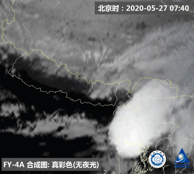▲ FY-4A靜止氣象衛(wèi)星監(jiān)測動畫(2020年5月27日07:35至11:15)