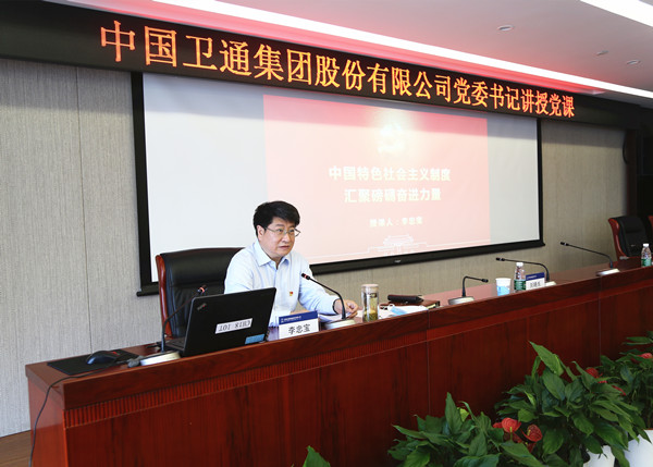 7月1日,在中國共產(chǎn)黨成立99周年之際,中國衛(wèi)通黨委書記、董事長李忠寶以《中國特色社會主義制度匯聚磅礴奮進(jìn)力量》為題講授專題黨課,激勵(lì)各級黨組織和廣大黨員進(jìn)一步振奮精神、凝心聚力,深入推進(jìn)公司轉(zhuǎn)型發(fā)展,堅(jiān)決打贏疫情防控阻擊戰(zhàn)和轉(zhuǎn)型發(fā)展攻堅(jiān)戰(zhàn),更加自覺地肩負(fù)起黨和國家賦予的責(zé)任使命。