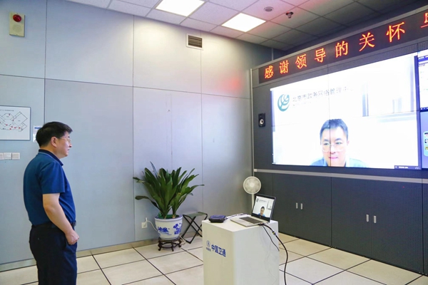 在寬帶衛(wèi)星運(yùn)營(yíng)中心,李忠寶與在瀘定抗震現(xiàn)場(chǎng)提供衛(wèi)星通信保障的前線(xiàn)職工進(jìn)行了視頻通話(huà),關(guān)切地詢(xún)問(wèn)現(xiàn)場(chǎng)情況,并向前線(xiàn)職工送上節(jié)日祝福,對(duì)他們舍小家顧大家,不畏艱險(xiǎn)、迎難而上,日夜堅(jiān)守在災(zāi)區(qū)一線(xiàn)表示感謝和慰問(wèn),叮囑他們要做好自身防護(hù),配合指揮部全力做好震區(qū)通信保障工作,為災(zāi)區(qū)人民恢復(fù)穩(wěn)定生活貢獻(xiàn)力量。