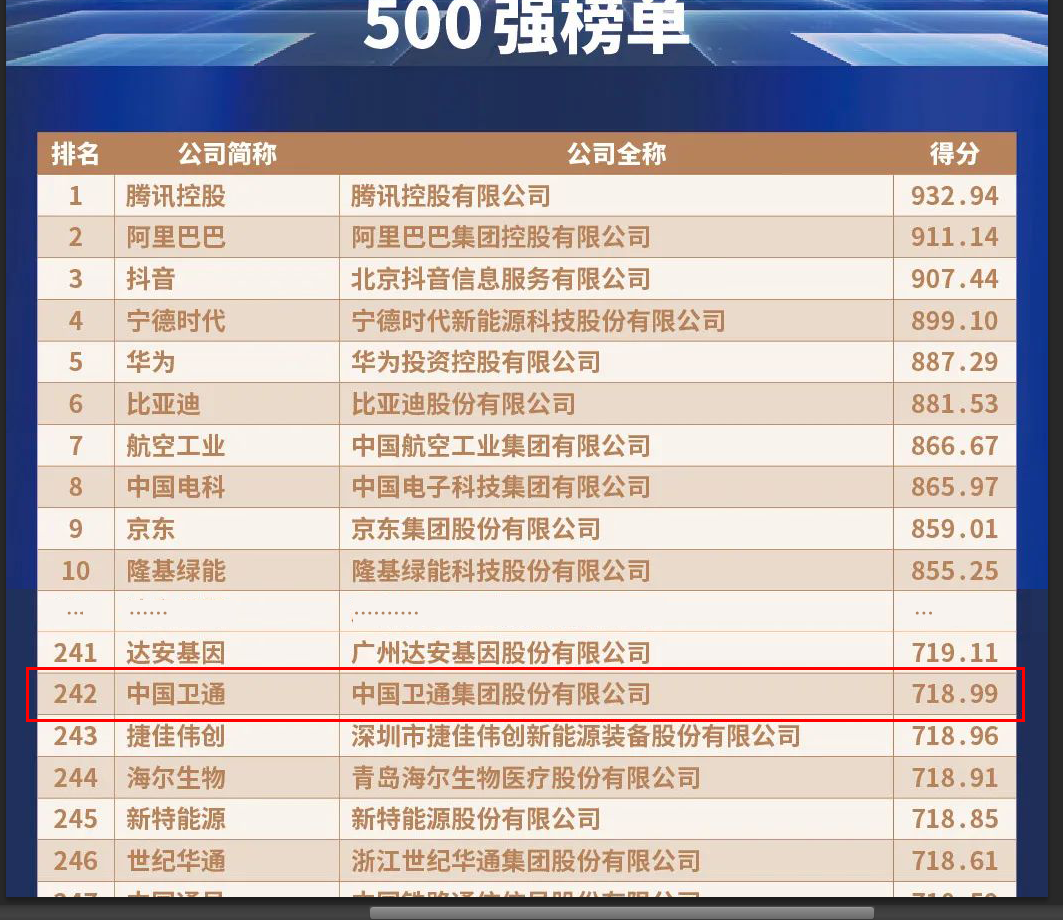 3月30日,2022中國新經濟企業(yè)500強榜單重磅發(fā)布。憑借在衛(wèi)星通信行業(yè)的深厚積累和積極探索,中國衛(wèi)通成功入選該榜單,位列242位。